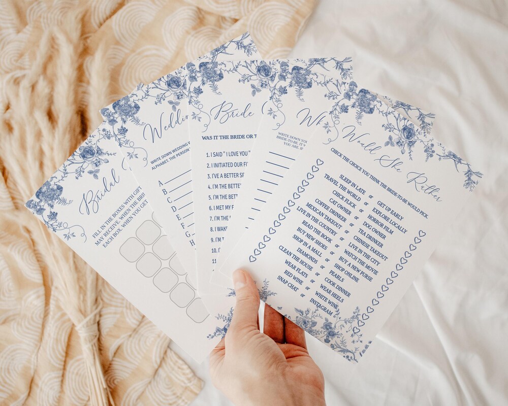 30 Bridal Shower Games Bundle Editable Download: Vintage Blue Toile, Romantic Font