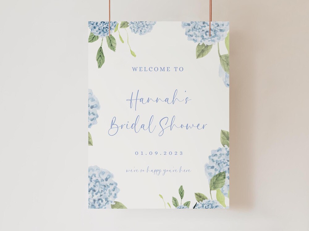 Blue Hydrangea Bridal Shower Welcome Sign Template