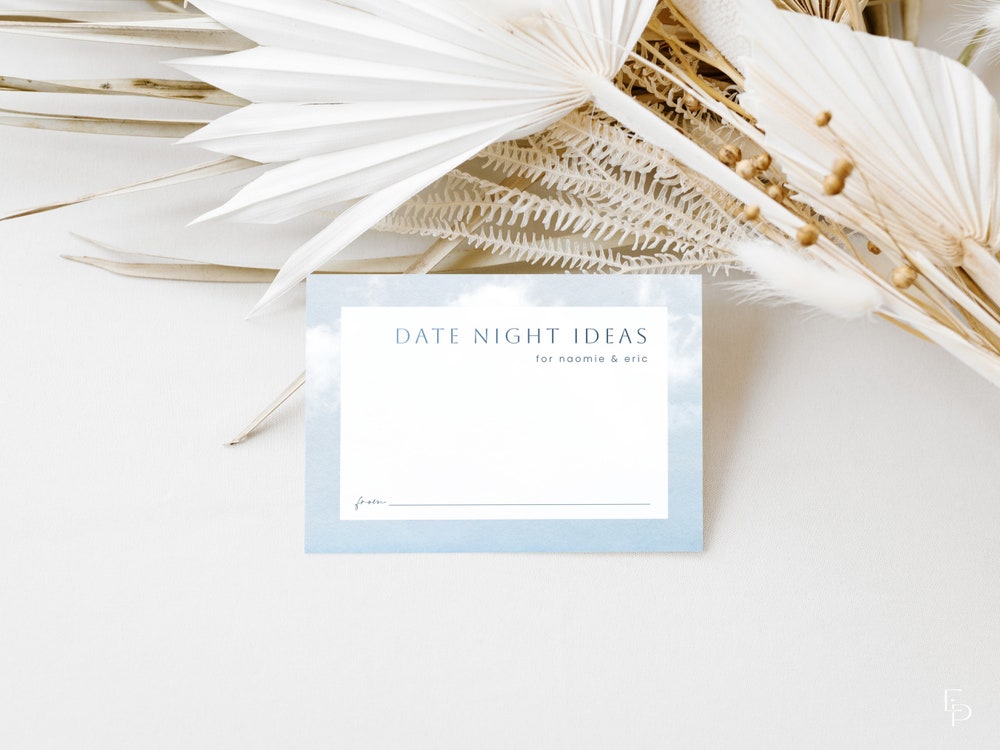 Date Night Ideas Card Digital Download, “On Cloud Nine” Themed Bridal Shower Activity